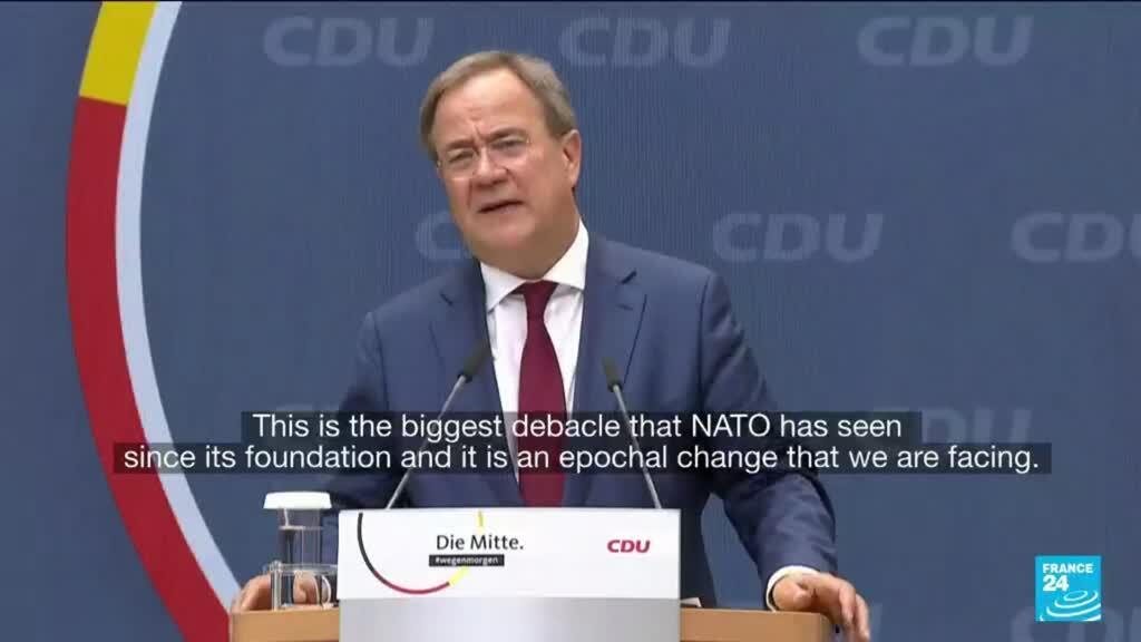 Neither the SPD nor the Greens wanted to implement the NATO states commitment to spend two percent of their economic output on defense. The Union candidate for chancellor calls for a quick European and transatlantic response. Germanys Laschet wants army to get local helpers out of Afghanistan.