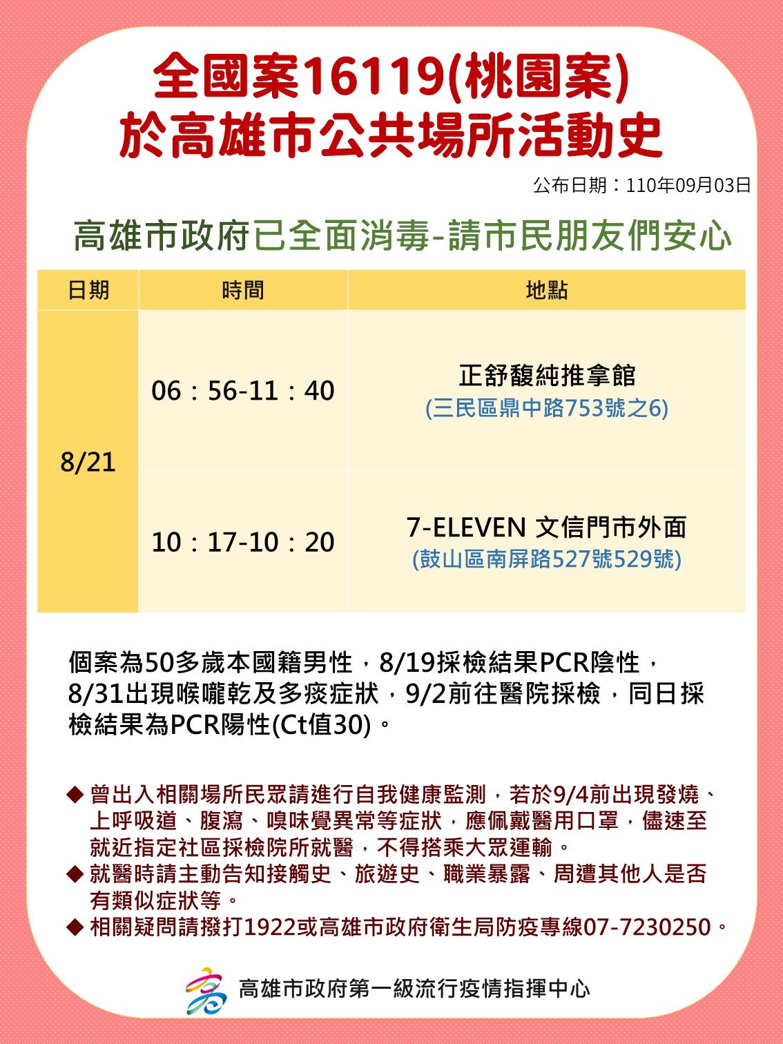 20210721 - 桃園確診男9天換5旅館 忙追查 好房網News桃園特殊交友圈再5同事家人都中鏢 多間賣場足跡曝 Yahoo奇摩新聞桃園今明8例全是特殊交友圈 旅館爽開趴同事家人慘被波及 ETtoday新聞雲7月26日是否降級解封 鄭文燦看確診個案可控 UDN 聯合新聞網台中家教翻. 新聞 桃園3確診者隱瞞足跡 鄭文燦要重罰 分享給朋友 台北診所男業務傳播鏈昨再添1人染疫該男家住桃園是台北電腦公司員工6月曾接觸 確診個案遭居家隔離解隔後7月又和某商場確診員工接觸2度被居隔19日確診. 20210716 - 廣達1主管染疫 10多位員工送驗PCR udn OOPS.