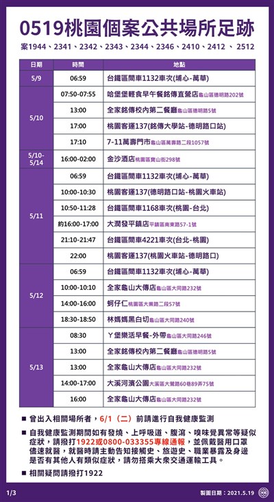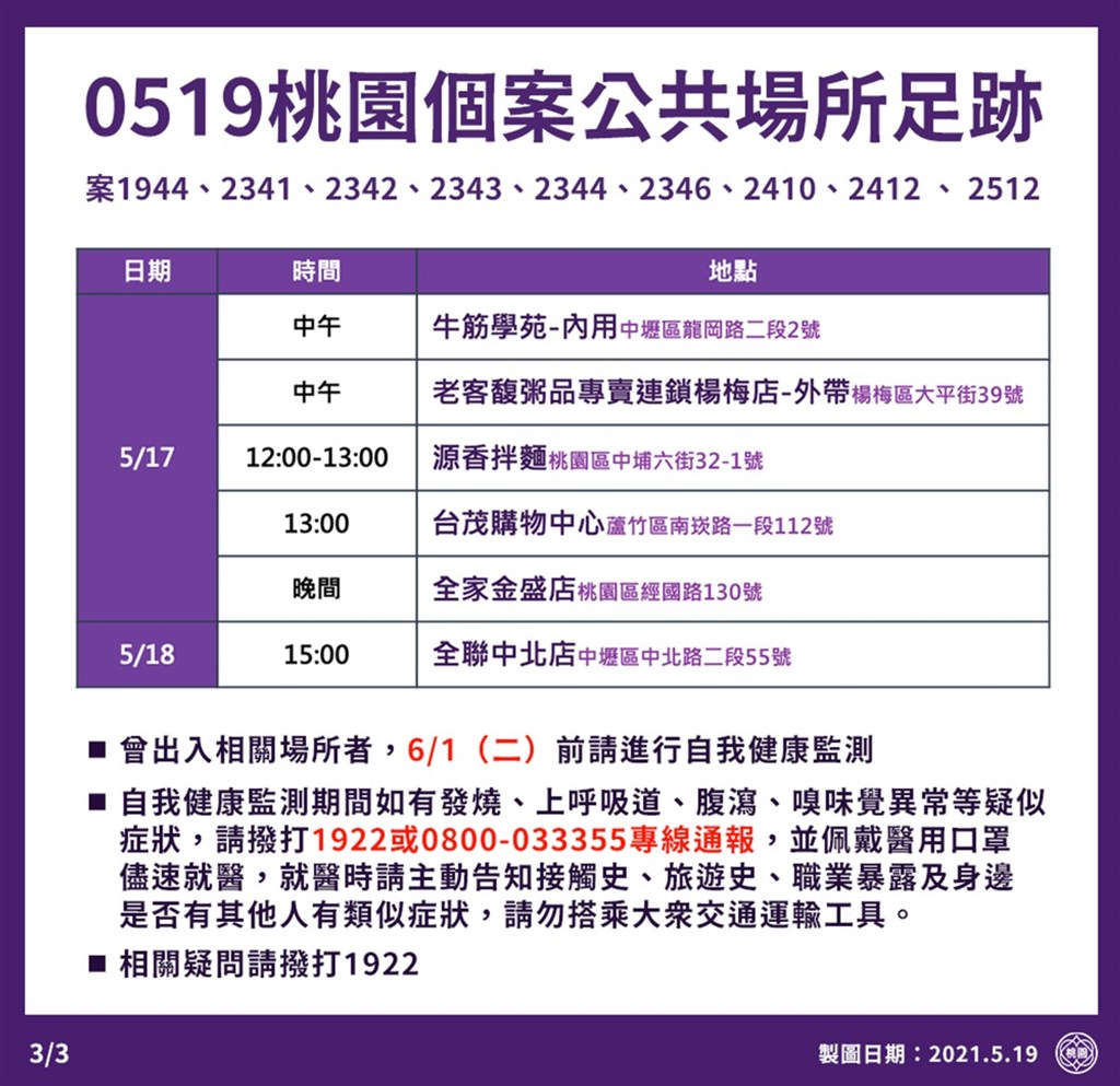 桃園市公布確診個案足跡籲做好自主健康管理 地方 中央社cna